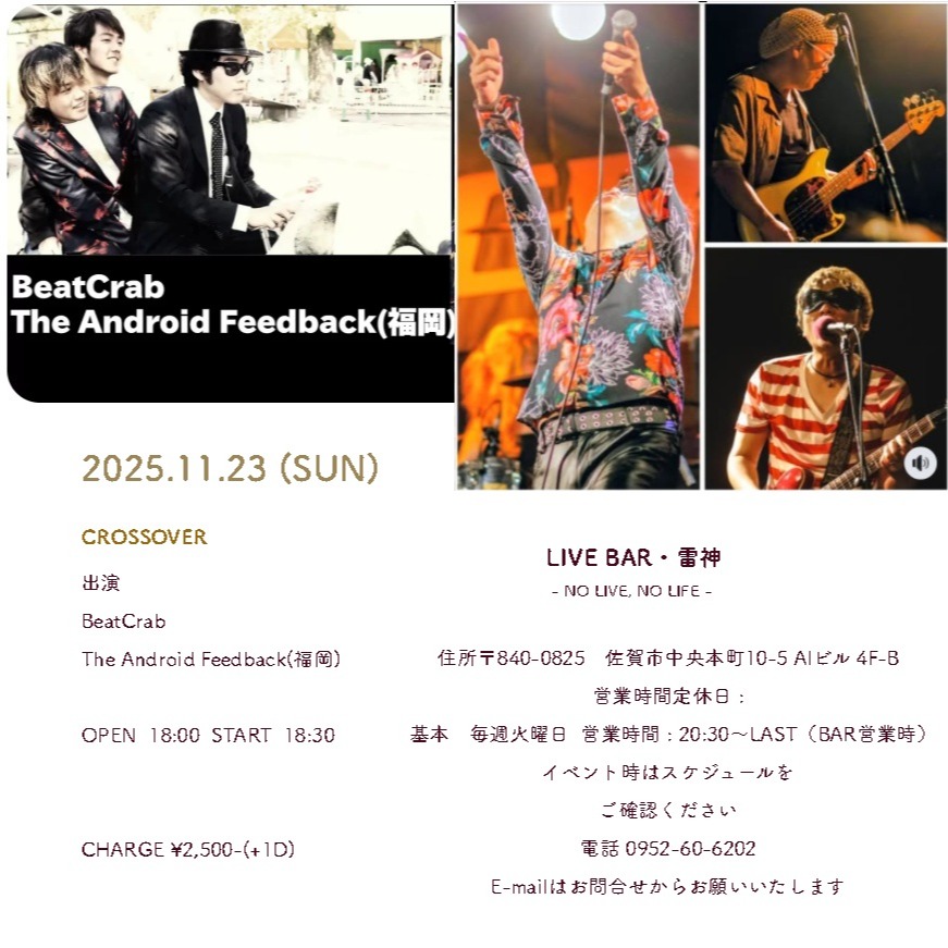 LIVE2025.11/23(日)CROSSOVER 佐賀LIVE BAR雷神